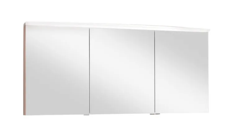Der 3-türige Spiegelschrank BRIGHT von b.collection mit einer Breite von 140 cm überzeugt mit Seitenteilen in Eiche Natur und einer sparsamen LED-Flächenleuchte. Durch das einzigartige Design ist der geschmackvoll gestaltete Spiegelschrank die optimale Ergänzung für den gleichnamigen Waschtisch. Hinter den Drehtüren des Spiegelschranks befindet sich viel Platz für täglich benötigte Hygiene- und Kosmetikartikel.