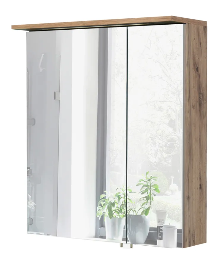 Der Spiegelschrank ist mit einer Beleuchtung ausgestattet, die für eine optimale Ausleuchtung sorgt. Zwei Einlegeböden bieten zusätzlichen Stauraum und helfen, Ordnung zu halten. Die Soft-Close-Funktion der Türen gewährleistet ein sanftes und geräuschloses Schließen. Dieser Schrank ist nicht nur praktisch, sondern auch ein stilvolles Element in jedem modernen Badezimmer.