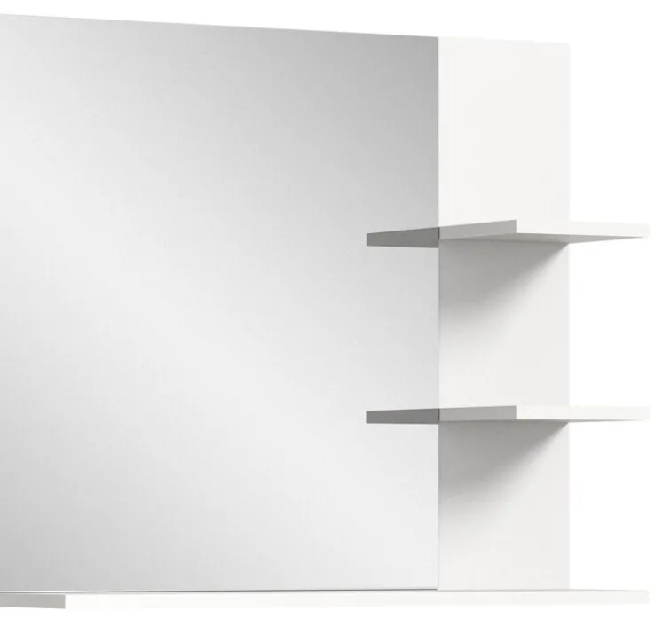 Ein großer Spiegel und praktische Ablagefläche – diese Vorzüge vereint der Badspiegel LAREDO. Der Korpus besteht aus hochwertiger Holznachbildung, die weiß lackiert ist. Das gibt dem Spiegel eine freundliche Ausstrahlung. Auf dem langen unteren Brett sowie den beiden seitlichen Ablagen lassen sich Pflegeartikel, Utensilien, Schmuck oder Deko platzieren.