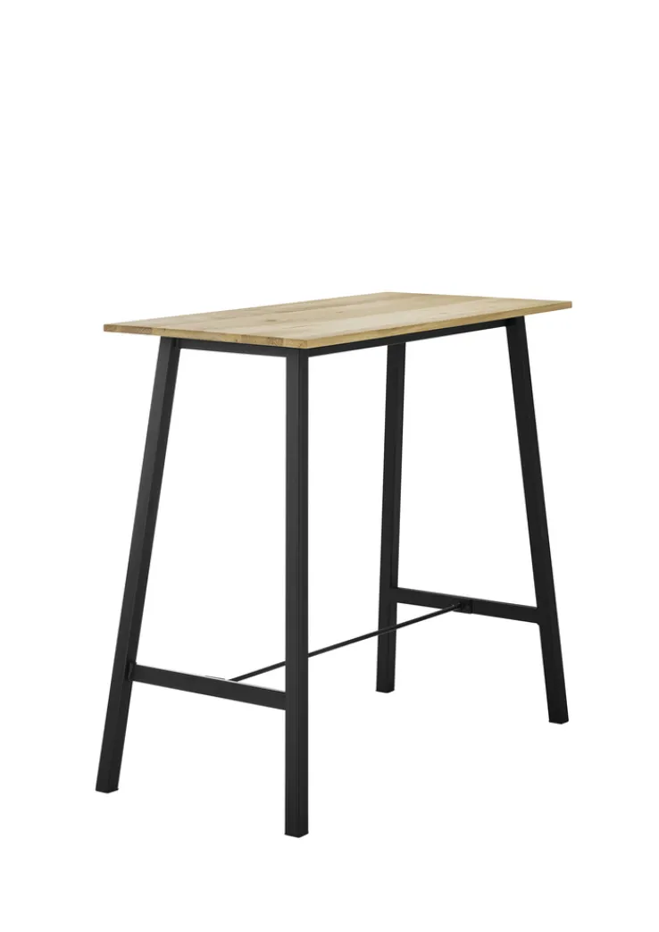 Die Tischplatte aus massivem, geöltem Eichenholz verleiht dem Tisch eine natürliche und warme Ausstrahlung, während das pulverbeschichtete Vierfußgestell aus schwarzem Metall für Stabilität und einen modernen Look sorgt. Die rechteckige Form des Tisches passt sich nahtlos in verschiedene Wohnstile ein und bietet eine praktische Ablagefläche.