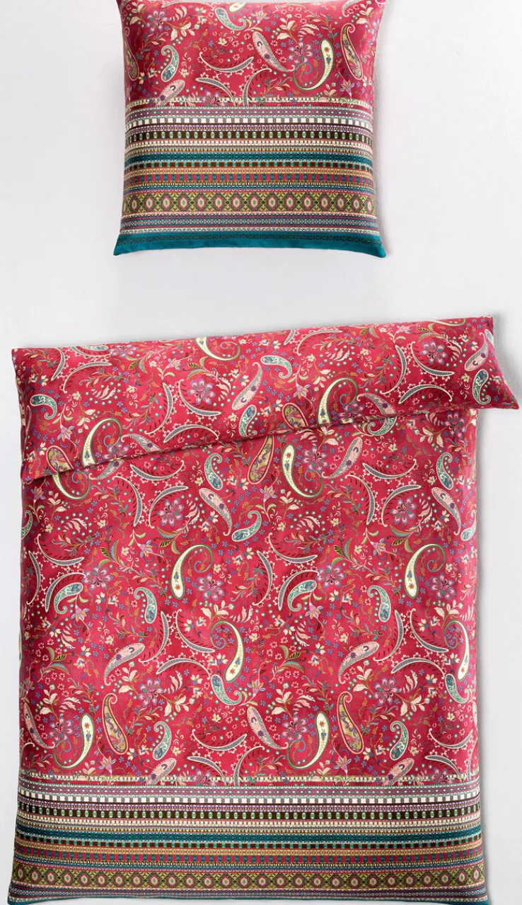 Im schönen Paisley Muster präsentiert sich diese hochwertige Mako-Satin Bettwäsche. Das orientalische Design ist sehr beliebt und eine klassische Ornamentik. Mako-Satin ist eine besondere Webart aus ägyptischer Baumwolle. Durch die sogenannte Atlasbindung entsteht eine glänzende Ober- und eine matte Unterfläche. Der Stoff dieser bunt-fröhlichen Bettwäsche BURANO V.R2 fühlt sich dadurch sehr glatt an und schmeichelt der Haut.