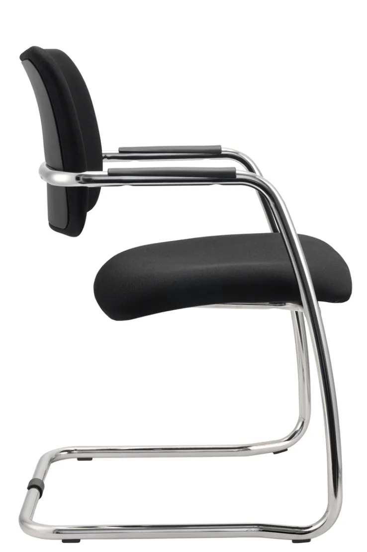 Der Stuhl zeichnet sich durch seine hochwertigen Materialien aus: Das Gestell besteht aus stabilem Alu, den schwarzen Stoffbezug fertigt der Hersteller aus widerstandsfähigem Polyester. Vor allem in Büros, Wartezimmern und Konferenzräumen leistet dieser Besucherstuhl wertvolle Dienste. Dank der stapelbaren Ausführung lässt er sich platzsparend deponieren, das erweist sich insbesondere bei flexiblen Bestuhlungen als vorteilhaft. Zugleich profitieren Nutzer von einem hohen Sitzkomfort. Der Freischwinger passt sich an das Körpergewicht an, die maximale Belastbarkeit beträgt 120 kg.