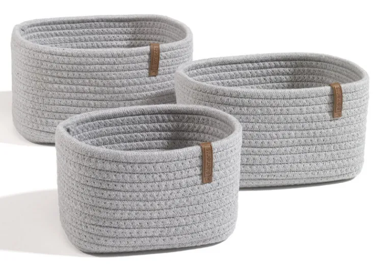 Der in Seiloptik gestaltete casaNOVA Aufbewahrungskorb besteht aus einem grauen Mischgewebe, gefertigt aus Baumwolle, Polyester und Polyurethan (PU). Der Dekokorb ist 20 cm breit, 12 cm tief und hat eine Höhe von 15 cm.