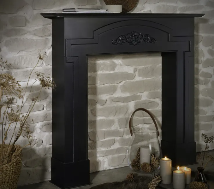 Die schwarze Kaminumrandung MITTERNACHT mit den Maßen 122 x 103 cm verleiht einer leeren Wand den Stil eines englischen Landhauses und bringt einen Hauch Romantik in Ihre Wohnräume. Ein Kamin mit einem offenen Feuer erzeugt eine ganze besondere Atmosphäre. Allen, die auf diese wunderschöne Stimmung bisher verzichten mussten, wird die Kaminumrandung aus dem Hause casaNOVA ein Lächeln ins Gesicht zaubern. Dieses Produkt ist ein absoluter Blickfang und kreiert ein behagliches Flair in Ihrem Zuhause, ganz ohne Schmutz und Ruß. Mit einer Länge von 20 cm bietet die schwarze Kaminumrandung MITTERNACHT ausreichend Platz für eine ansprechende Dekoration. Bringen Sie die Bilder Ihrer Liebsten oder wertvolle Andenken aus dem Urlaub perfekt zur Geltung. Auf dem Boden vor der Kaminumrandung runden brennende Kerzen oder leuchtende Windlichter das Gesamtbild harmonisch ab. Die stabile schwarz Holznachbildung passt hervorragend zum Landhausstil oder bildet einen bewussten Kontrast zu einer klaren und modernen Einrichtung.