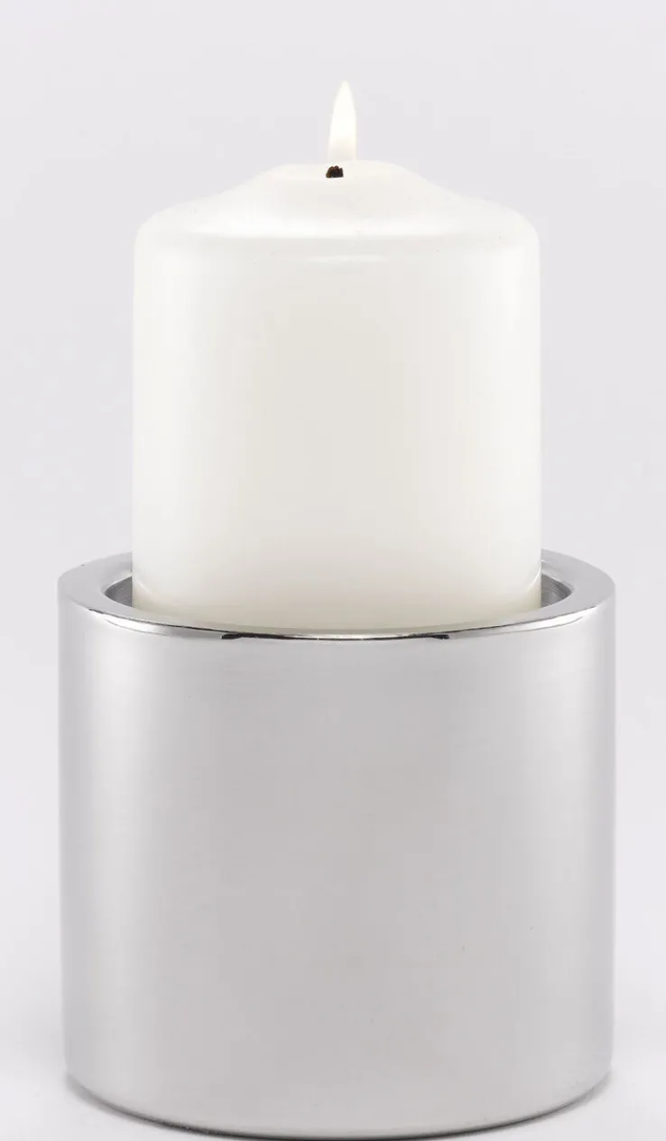 Der elegante Kerzenständer von casaNOVA zieht die Blicke mit einer glänzenden Optik in den Farben Silber und Grau auf sich. Das runde Modell mit dem Durchmesser von elf Zentimetern und der Höhe von nur zehn Zentimetern ist für Stumpenkerzen geeignet. Der Kerzenhalter aus robustem Edelstahl überzeugt mit einer eingesteckten Kerze als harmonische Einheit. Das Modell sieht in Kombination mit jeder farbigen und jeder weißen Stumpenkerze in verschiedenen Längen festlich aus. Der leicht von Wachs und Ruß zu reinigende Kerzenständer wird ohne Kerze geliefert. Das feine Modell fasziniert dekorativ auf gedeckten Tischen als Einzelstück und auch in der Gruppe mit mehreren Haltern.