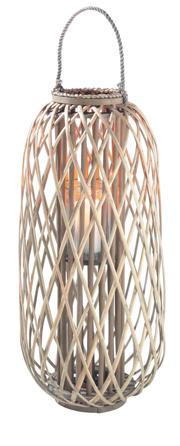 Die Laterne INDIA von casaNOVA sorgt für eine stimmungsvolle Beleuchtung mit orientalischem Flair. Sie eignet sich zum Hinstellen oder Hängen und ist immer ein schöner Blickfang. Mit einer Höhe von 75 cm und einem Durchmesser von 28 cm lässt sich die Laterne INDIA auf der Terrasse und dem Balkon oder auch im Innenbereich Ihrer Wohnung nutzen. Der Glaseinsatz hat eine Größe von 13,5 x 17 cm und bietet einen windgeschützten Platz für eine Kerze Ihrer Wahl. Den äußeren Korpus der Laterne bildet ein hellbraunes Geflecht aus Weide und Holz. Diese Naturmaterialien machen die Laterne INDIA zu einem besonderen Dekoobjekt.