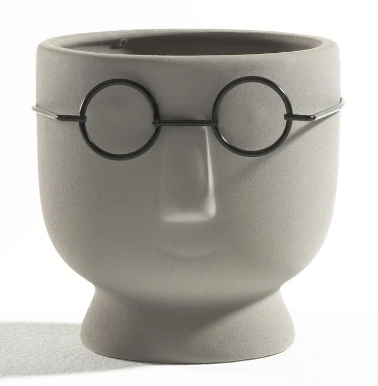 Der Übertopf Gesicht ist aus grauer Keramik gefertigt und überzeugt mit anmutigen Formen. In seinem Inneren lassen sich blühende Zimmerpflanzen ebenso arrangieren wie zeitloses Immergrün. So werden Blüten oder Blätter zur schmucken Frisur für den gut aussehenden Kübel. Ein hübsches Geschenk zur Wohnungseinweihung oder zum Abendessen bei den Nachbarn. Wer will, kann sich auch selbst eine Freude damit machen.