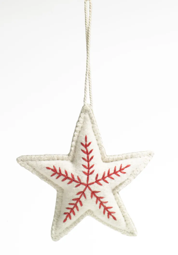 casaNOVA Weihnachten Deko Anhänger Stern 16 cm beige-rot