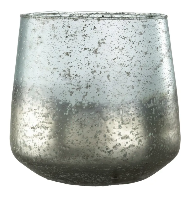 Die Oberfläche des Windlichts zeigt eine interessante Struktur mit einem leicht gesprenkelten Muster, das dem Glas eine besondere Textur verleiht. Diese Details sorgen für ein faszinierendes Spiel von Licht und Schatten, wenn eine Kerze im Inneren entzündet wird. Das Windlicht ist nicht nur ein dekoratives Element, sondern auch ein funktionales Accessoire, das eine gemütliche Atmosphäre schafft.
