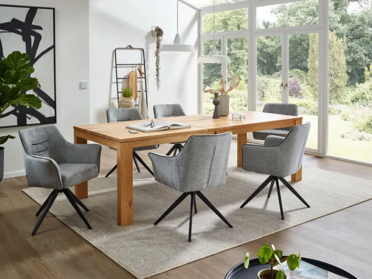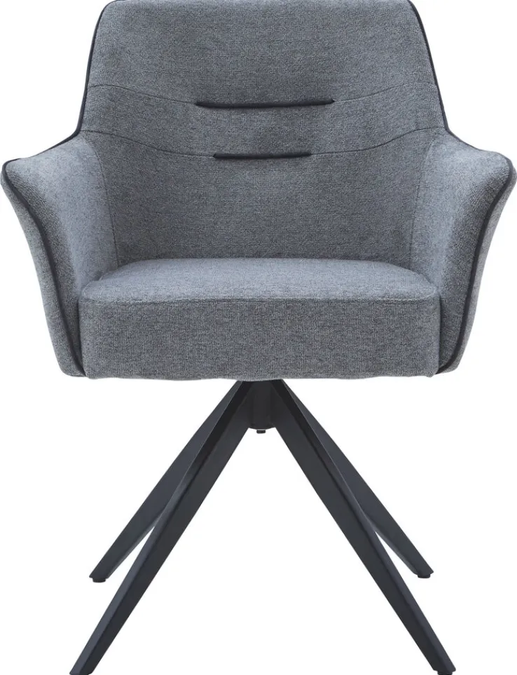 Der CASAVANTI Armlehnstuhl BLIZZARD hat eine Größe von 68 x 85 x 61 cm und kombiniert sein schwarz pulverbeschichtetes Spinngestell aus Metall mit einem angenehm gepolsterten Sitz. Bezogen mit grauer Synthetikfaser und Absetzungen in Schwarz strahlt der Armlehnstuhl Modernität aus. Der Sitz mit einer komfortablen Sitzhöhe von 51 cm ist um 360°C drehbar, wodurch das Aufstehen vom Esstisch auch ohne Sesselrücken möglich ist. Perfektioniert wird der Sitzkomfort von festen Armteilen. Mit seinem angesagten Design ist der Armlehnstuhl ideal für modern gestaltete Esszimmer und offene Wohn-Essbereiche.