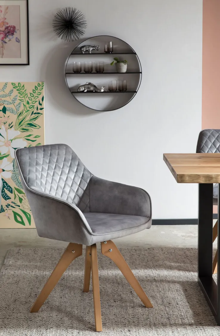 Mit dem grauen CASAVANTI Armlehnstuhl mit Samtvelours-Bezug zieht in stylischer Blickfang mit hohem Sitzkomfort in den Essbereich ein. Durch sein angesagtes Design macht er im Esszimmer ebenso eine gute Figur wie im offenen Wohn-Essbereich.