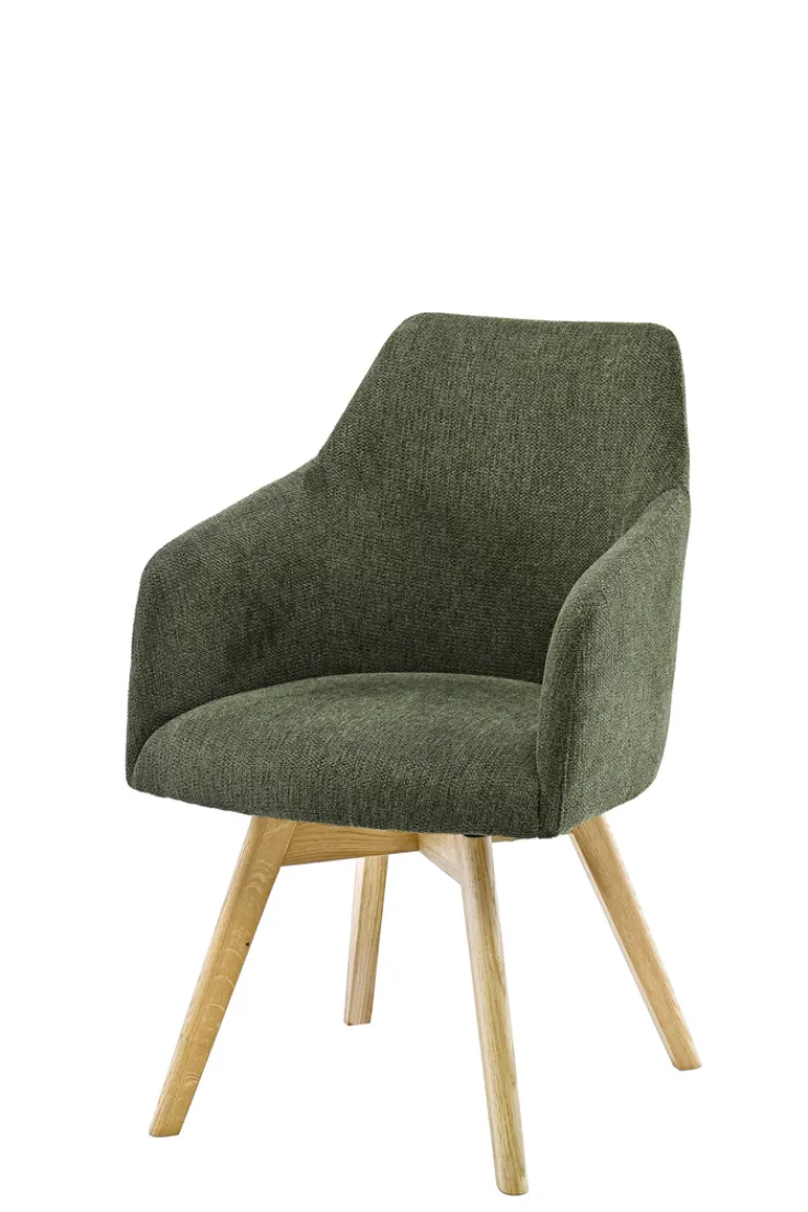Der hochwertige Armlehnstuhl TOFANA ist mit einem Vierfußgestell aus Massivholz und einem weichen Textilbezug ausgestattet. Mit seiner mittelhohen Rückenlehne und den bequemen Armstützen lädt er zum Hinsetzen und Ausruhen ein. Er ist drehbar, was ihn noch komfortabler und flexibler macht. Außer im Ess- und Wohnzimmer lässt sich dieser schöne Armlehnstuhl auch im Arbeits- oder Gästezimmer nutzen. Sein ansprechendes Design passt sehr gut zum Landhausstil, einem modernen oder traditionellen Einrichtungsstil.