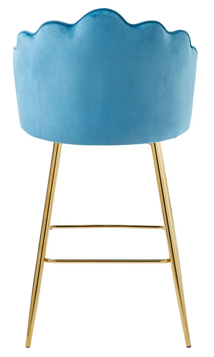Der CASAVANTI Barhocker misst 52 x 100 x 54 cm und basiert auf einem goldfarbigen Vierfußgestell aus Metall mit komfortabler Fußbank. Sein solides Gestell vereint er mit einem gepolsterten Sitz mit halbhoher Rückenlehen im Muscheldesign. Die feste Polsterung verleiht dem Barstuhl gemeinsam mit dem weichen Samtbezug einen komfortablen Sitz. Das Highlight des Barhockers ist jedoch sein elegantes Design. Damit harmoniert er mit verschiedenen Einrichtungsstilen und verleiht der Hausbar Eleganz und Gemütlichkeit.