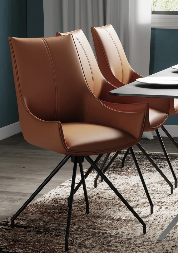 Ein besonderes Merkmal dieses Stuhls ist seine 360°-Drehbarkeit, die Flexibilität und Bewegungsfreiheit gewährleistet. Der Stuhl ist ideal für den Einsatz in modernen Wohnräumen und fügt sich nahtlos in verschiedene Einrichtungsstile ein. Die Kombination aus Polyurethan und Metall verleiht dem Stuhl nicht nur eine ansprechende Optik, sondern auch eine robuste Struktur. Der Polsterstuhl MELISSA ist die perfekte Wahl für alle, die Wert auf Design und Komfort legen.