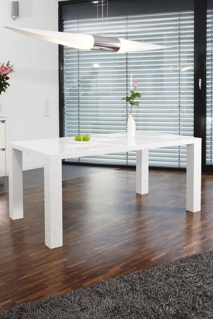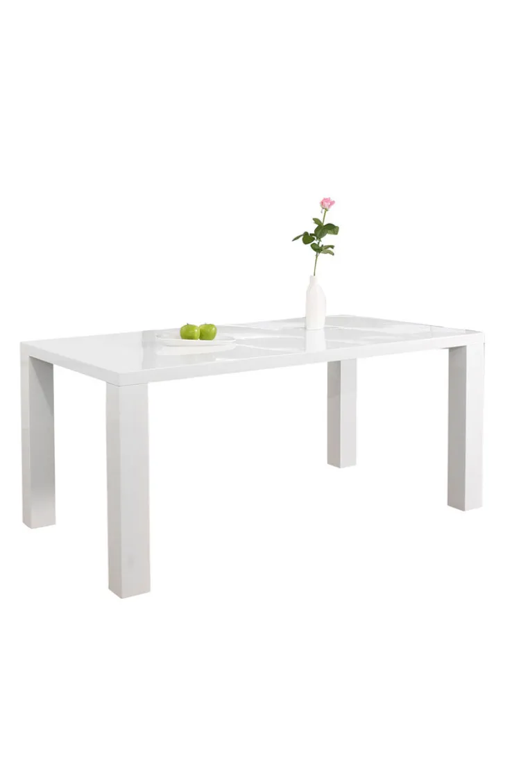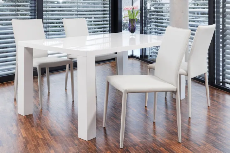 Ein Tisch für sechs Personen: Der weiße CASAVANTI Esstisch misst 180 x 90 cm und ist 76 cm hoch. Die Holznachbildung aus MDF sieht durch die Hochglanz-Lackierung besonders edel aus.