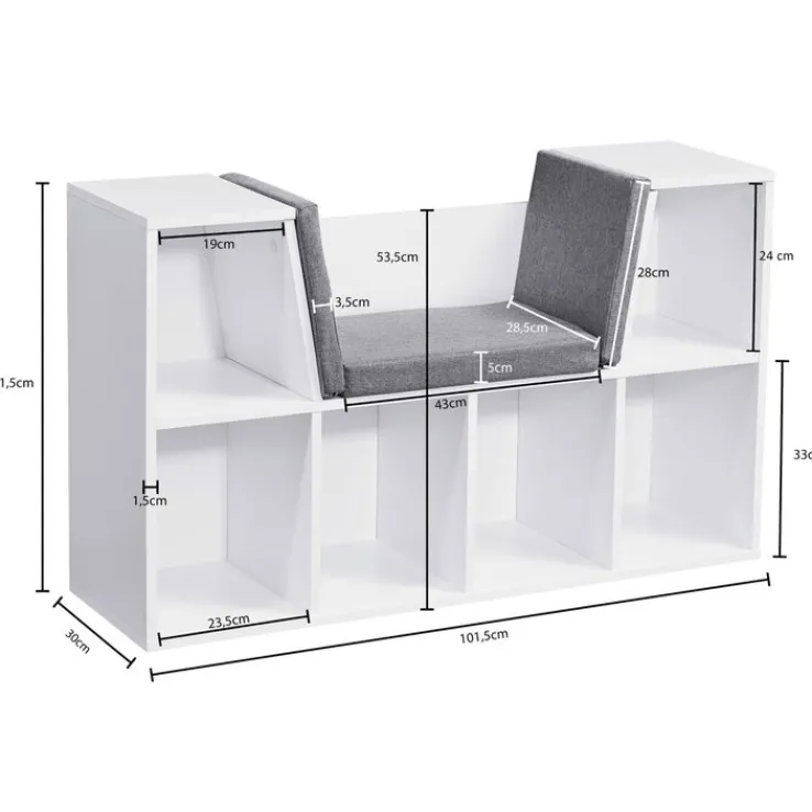 Durch dieses in Weiß gehaltene CASAVANTI Regal mit den Maßen 102 x 62 cm wird jeder Raum aufgewertet. Denn das Regal im modernen Stil bietet nicht nur jede Menge Stauraum für zum Beispiel Bücher oder ansprechende Dekorationsobjekte, sondern überzeugt durch die integrierte Sitzfläche, die dazu einlädt, es sich gemütlich zu machen.