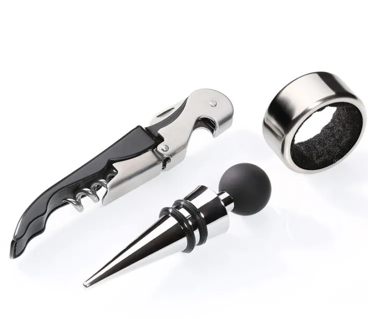 Herzstück des cilio Wein-Set BARDOLINO ist der Korkenzieher mit Hebelgriff, auch als Kellnermesser bekannt. Die Kombination aus silberfarbigem Metall und schwarzem Kunststoff lässt das Werkzeug besonders elegant wirken. Ebenfalls in der Box enthalten ist ein Tropfenfänger, der sich formschön um den Flaschenhals schmiegt. Der dekorative Flaschenverschluss sorgt nach dem Genuss dafür, dass Aroma und Frische des Getränks erhalten bleiben.