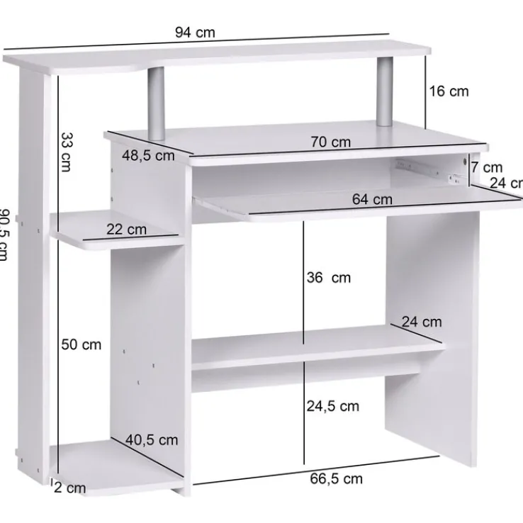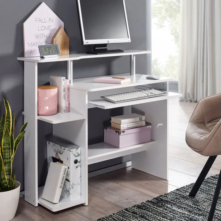 Der weiße Computertisch mit einer Arbeitsfläche von 94 x 48,5 cm ist perfekt für den Arbeitsbereich in der Wohnung geeignet. Auch im Jugendzimmer oder in der Studentenwohnung ermöglicht er bequemes Arbeiten am PC.