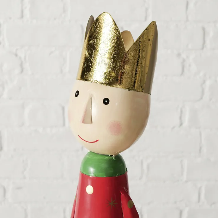 Mit einer Höhe von 58 cm und einer Breite von 15 cm ist die Figur ein auffälliger Blickfang, der sich ideal für die Dekoration von Wohnräumen eignet. Das Gewicht von 875 kg verleiht der Figur Stabilität, sodass sie sicher aufgestellt werden kann. Die goldene Krone auf dem Kopf der Figur unterstreicht den festlichen Charakter und macht sie zu einem besonderen Highlight in jeder Weihnachtsdekoration.
