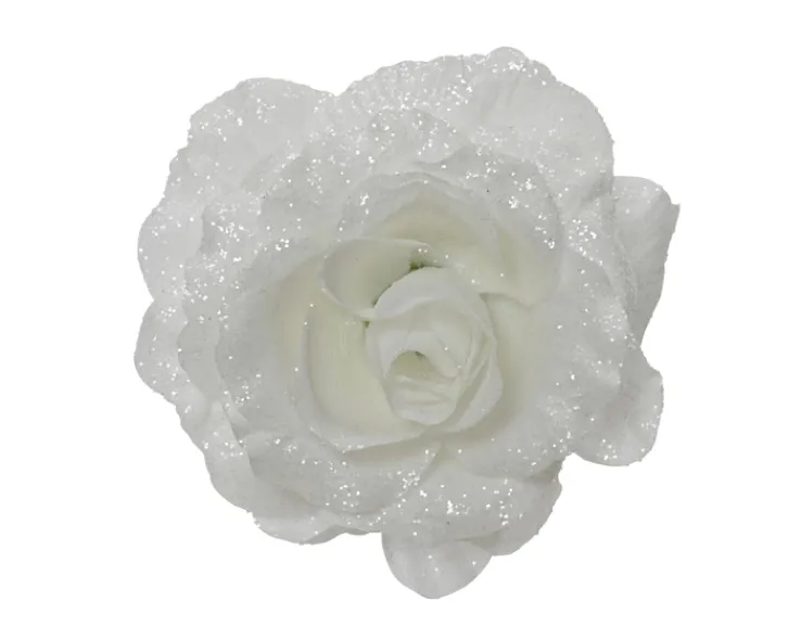 Sie ist sprichwörtlich die Königin unter den Blumen – und diese edle Rose auf Clip ist ganz gewiss ein Highlight in der Advents- und Weihnachtszeit. Die fast schon glamourös anmutende Optik in zartem Weiß und der seichte Glitzerschein auf ihrer Oberfläche lassen dieses kreative Glitzer-Element ungemein luxuriös erscheinen.