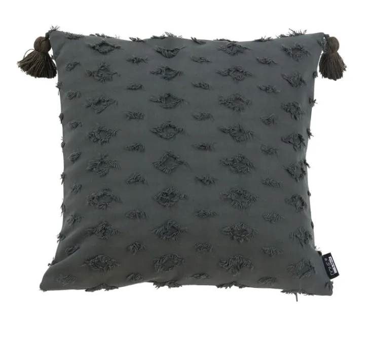 In der Farbe Anthrazit ist die 45 x 45 cm große Kissenhülle LUISE des Herstellers DONE insbesondere für helle Inneneinrichtungen vorgesehen und eignet sich für kontrastreiche, dekorative Inszenierungen. Ein optisches Highlight bieten die an den oberen Ecken befestigten Quasten. Im Vintage-Design gestaltete Applikationen runden das Kissenhüllen-Design ab. Dank der unifarbenen Optik lässt sich das Wohntextil auch zu ausdrucksstarken Vorhängen und Teppichen mit großflächigen Mustern kombinieren.