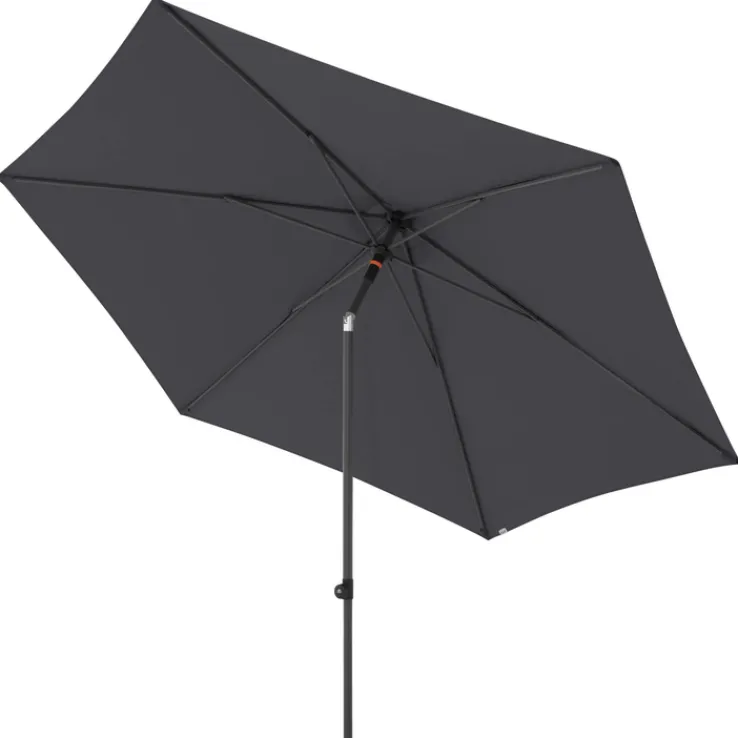 Unter diesem Sonnenschirm haben auch Freunde Platz. Mit seinem großen Durchmesser liefert er ausgiebig Schatten, dazu bietet die lichtechte Bespannung aus Polyester einen UV-Schutz 60+. So macht selbst die ausgiebige Kaffeerunde an heißen Tagen Spaß. Die Knickfunktion ermöglicht es, den Schirm entsprechend der Sonne auszurichten und den Schatten ganz nach Bedarf wandern zu lassen. Handöffner, Verstellrad und Push-up-Schiebemast sorgen für Bedienungskomfort. Der myZONE-Sonnenschirm kann mittels Handwäsche gereinigt werden. Bitte Mindestsockelgewicht von 50 kg und Gebrauchshinweise beachten.