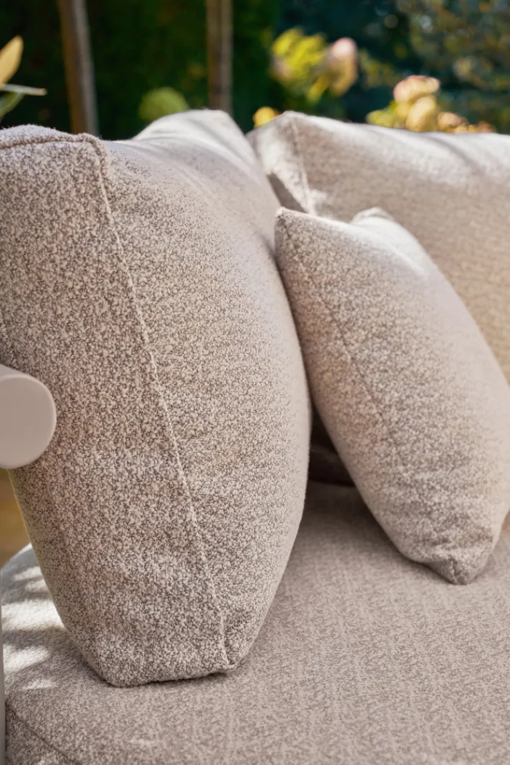 Mit einer Gesamtbreite von 310 cm und einer Tiefe von 66 cm bietet das Loungesofa bequem Platz für bis zu vier Personen. Alle Möbel der Living Gartenlounge REDA von Garden FLAIR kombinieren ein robustes Aluminiumgestell mit einem Polsterbezug aus widerstandsfähigem Outdoorgewebe. Wer den trendigen Japandi-Style mag, der die schlichte Ästhetik des japanischen mit dem coolen Minimalismus des skandinavischen Einrichtungsstils mixt, wird dieses Loungemöbel-Set im eigenen Garten lieben.