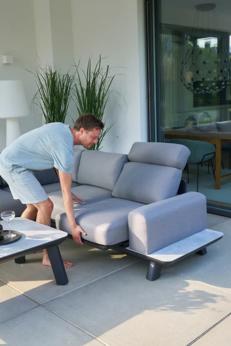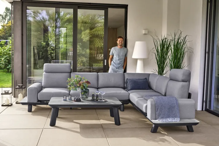 Für den gewünschten Komfort sorgen die ebenfalls im Lieferumfang enthaltenen Sitz- und Rückenpolster in edlem Hellgrau. Deren Bezüge aus widerstandsfähigem Olefin Outdoorgewebe sind abnehm- und waschbar. Durch die Gestelle aus schwarz pulverbeschichtetem Aluminium sowie die Platten aus SPC-Kunststoff kommen die Loungemöbel überaus robust daher. Zu den absoluten Highlights der hochwertigen und stilvollen Garden FLAIR Living Gartenlounge RUNE gehören die zwei Kopfstützen und die zwei Relaxfunktionen – für Entspannung vom Feinsten.