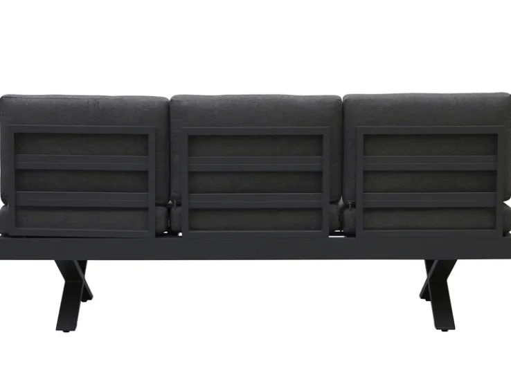 Der 3-Sitzer besteht aus jeweils drei Sitz- und Rückenpolstern in Olefin Grau. Das Besondere daran sind die Kopfteilverstellung links sowie die Ablage rechts, die ausgezogen werden kann, so dass eine Sitzerweiterung oder eine Liegeposition geschaffen werden kann. Ein weiterer Vorteil sind die abnehmbaren Rückenlehnen. Das Gestell in Aluminum Grau/Schwarz bildet einen harmonischen Kontrast zum Design des Loungesofas. Der textile Bezug in Olefin eignet sich als Outdoorgewebe, denn er ist wasserabweisend. Ein modernes und komfortables Loungesofa für den gemütlichen Abend oder die entspannte Runde!