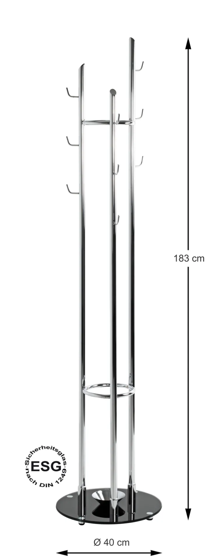Breite: 40 cmHöhe: 183 cmTiefe/Ausladung: 40 cmGewicht: 7,20 kgDurchmesser: 40 cm