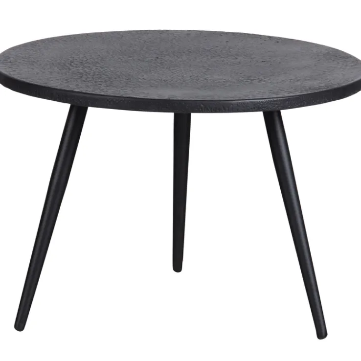Der Garten-Beistelltisch SUZE ist 2-teilig, beide Tische haben einen Durchmesser von 53 cm, ihre Höhe beträgt 36 und 45 cm. Das Dreifußgestell ist aus schwarzem Metall, die Tischplatte aus Holz.