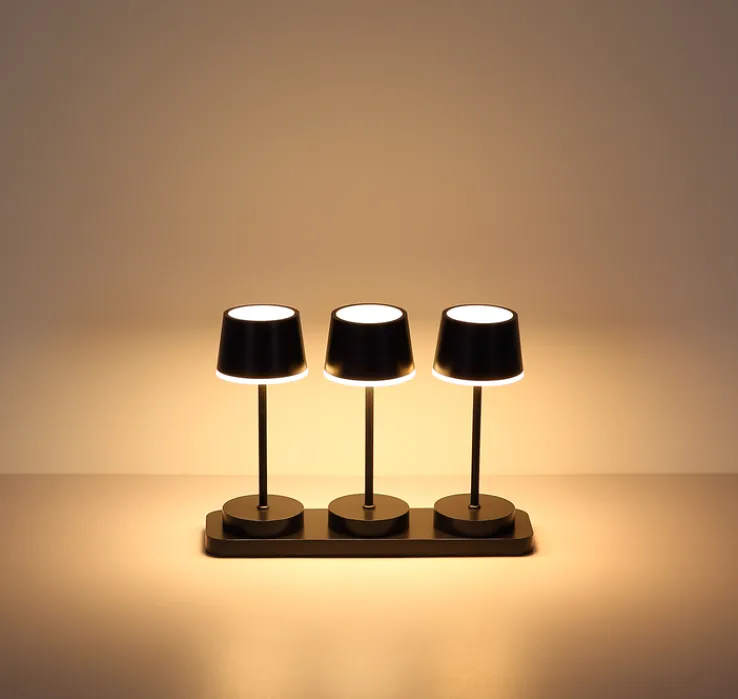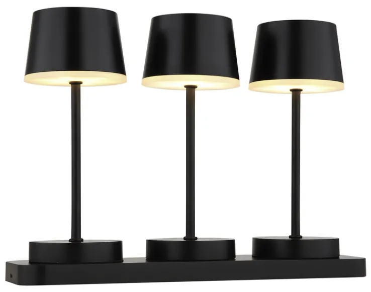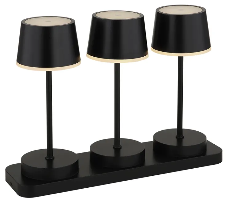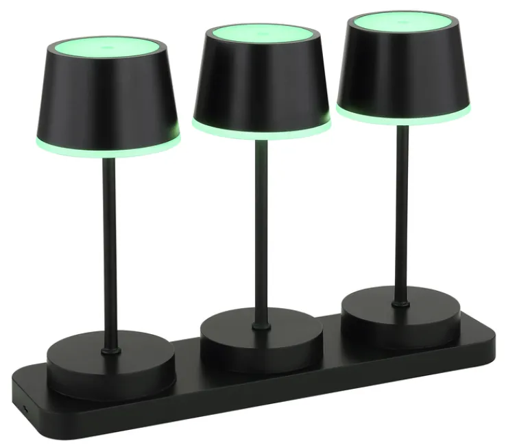 Die Akku LED Tischleuchte DAWSON von GLOBO vereint modernes Design mit praktischer Funktionalität. Dieses Set besteht aus drei stilvollen Tischlampen, die auf einer eleganten Ladestation platziert sind. Die Lampen sind in einem zeitlosen Schwarz gehalten und bestehen aus einer Kombination von Kunststoff und Metall, was ihnen eine robuste und dennoch ansprechende Optik verleiht. Die konische, runde Form der Lampenschirme ergänzt den skandinavischen Stil, der sich nahtlos in verschiedene Wohnumgebungen einfügt.