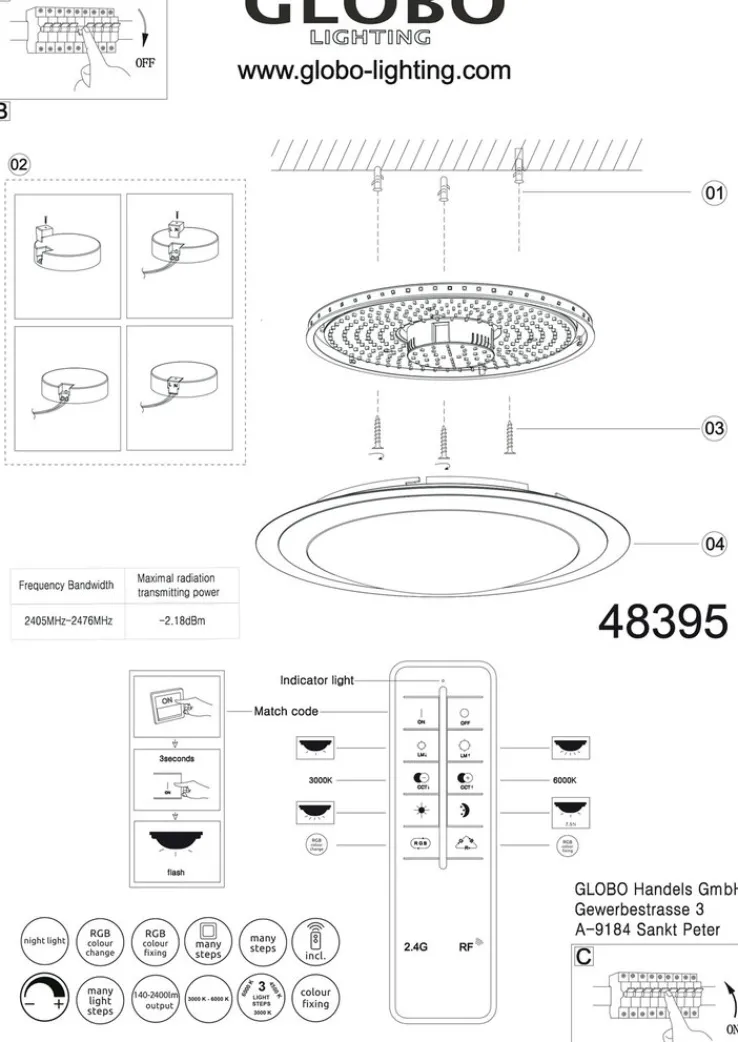 im Lieferumfang enthalten PORTA: 1 Deckenlampe, Leuchtmittel, Fernbedienung, Zuleitung und leicht verständliche Montageanleitung lt. Ausstattung/ZubehörZusatzhinweise PORTA: Bitte die Pflegeanleitung an der Ware beachten.Bitte die Hinweise an der Ware beachten.Lieferhinweise PORTA: Alle Maße sind circa Angaben. Geringfügige Abweichungen sind möglich.Die Lieferung erfolgt je nach Artikelart frei Verwendungsstelle, frei Bordsteinkannte auf einer Einwegpalette oder als Paket. Bitte trage Sorge dafür, dass am vereinbarten Speditionsliefertermin die Ware entgegengenommen werden kann.Lieferhinweis: ohne Dekoration, Leuchtmittel siehe technische DatenEntsorgungshinweis PORTA: Weitere Informationen zur Entsorgung von Altgeräten findest du in unseren Entsorgungshinweisen (https://porta.de/entsorgungshinweis)Sicherheitshinweise / Gefahrenhinweise / Warnhinweise PORTA: Bitte die allgemeinen Sicherheitshinweise in der Montageanleitung beachten!Lieferzustand: teilmontiert