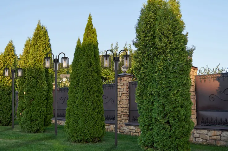 Ein herausragendes Merkmal der LED Retrofit Mastleuchte ADELHEID von GLOBO ist ihr Aufbau als 3-flammiger Kandelaber. Aus den matt gehaltenen Metallstäben gehen im oberen Bereich die nach unten zeigenden Lampenschirme hervor. Jeder von ihnen verfügt über eine E27-Fassung und kann eine wechselbare AGL- oder Retrofit-LED mit maximal je 15 Watt aufnehmen. Insgesamt darf der Energiebedarf der gesondert erhältlichen Leuchtmittel also bei bis zu 45 Watt liegen. Die teilmontiert gelieferte Außenleuchte mit CE-Prüfsiegel ist nach IP44 spritzwassergeschützt und entspricht der Schutzklasse 1.