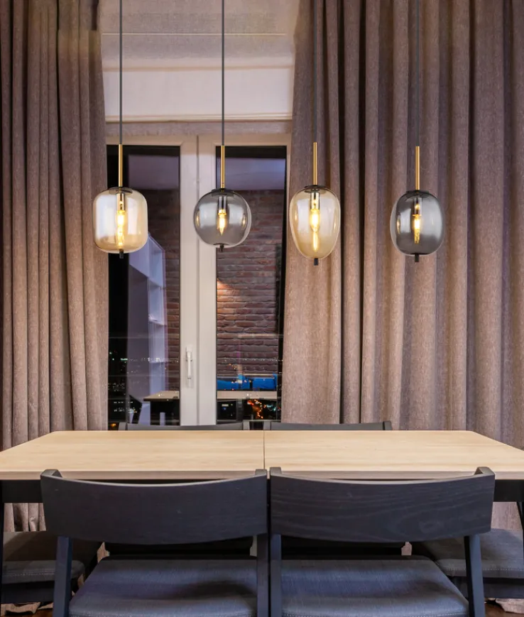 Edel und zeitlos schön: Die Gläser der Hängeleuchte BLACKY sind nicht nur unterschiedlich geformt, sie gefallen auch durch ihr Farbspiel in lebhaftem Amber und zurückhaltendem Rauchgrau. Die hochwertige Lampe der Marke GLOBO ist für Innenräume gedacht. Sie ist perfekt am Esstisch, über Wohnlandschaften sorgt sie für angenehmes, blendfreies Licht. Die auswechselbaren Leuchtmittel AGL und Retrofit LED bis 40 W können mitbestellt werden. Eine detaillierte Aufbauanleitung und Gebrauchshinweise befinden sich am Artikel.