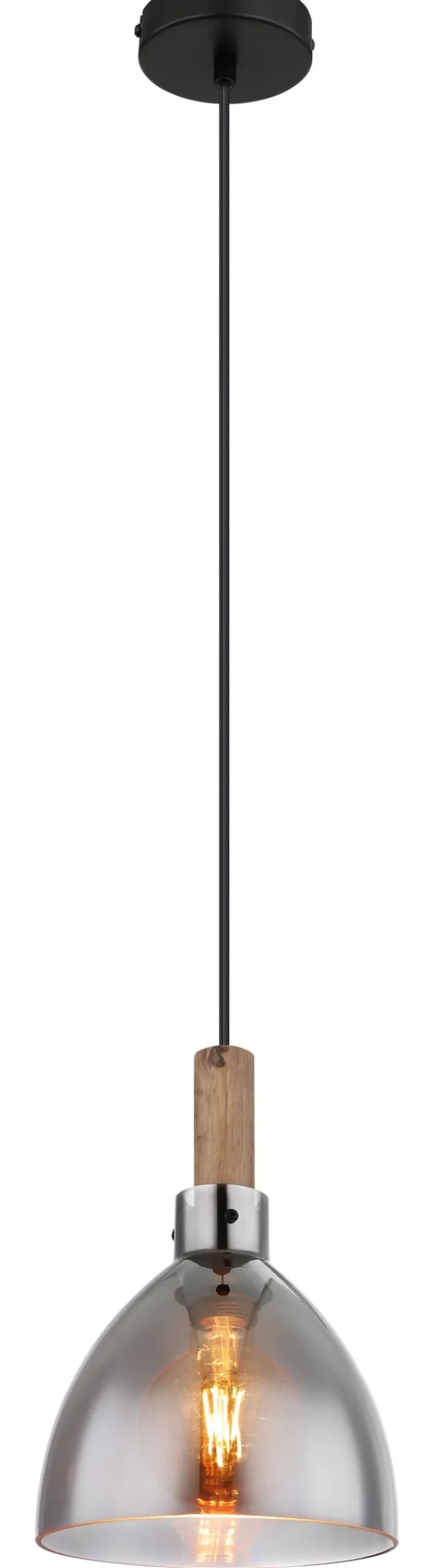 GLOBO Retrofit LED Pendelleuchte MATTEA 1-flg schwarz /Holzdekor