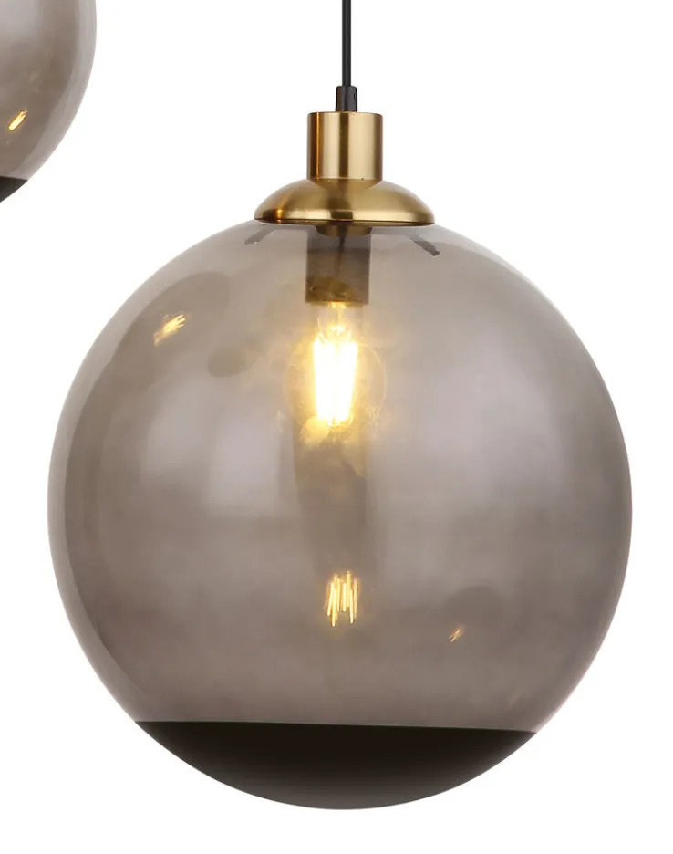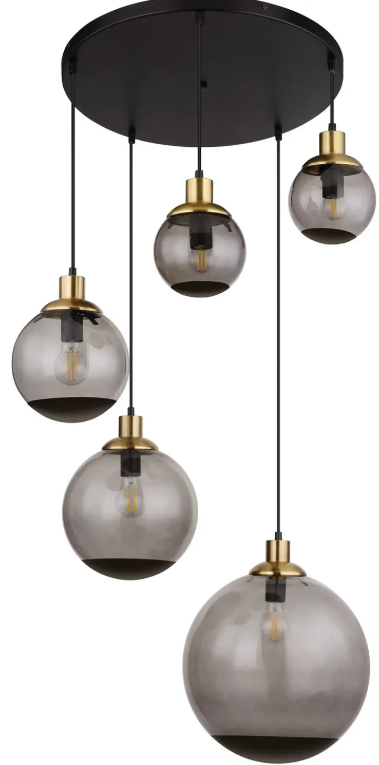 Die Pendelleuchte POTTER von GLOBO vereint stilvolles Design mit funktionaler Beleuchtung. Mit einer Breite von 65 cm und einer Höhe von 150 cm fügt sie sich harmonisch in jeden Raum ein. Die Leuchte besteht aus robustem Metall und präsentiert sich in einem eleganten Schwarz-messingfarbigen Farbton. Die fünf kugelförmigen Lampenschirme aus rauchfarbenem Glas verleihen der Leuchte einen besonderen Charme. Ausgestattet mit E27-Fassungen, bietet die Leuchte Flexibilität bei der Wahl der Leuchtmittel. Sie unterstützt sowohl AGL als auch Retrofit LED, wobei die Leuchtmittel austauschbar sind. Mit einem maximalen Energieverbrauch von 170 W sorgt sie für eine angenehme Beleuchtung. Die Schutzklasse 1 und die Schutzart IP20 garantieren Sicherheit und Langlebigkeit. Diese Pendelleuchte ist die ideale Wahl für alle, die Wert auf Qualität und ansprechendes Design legen.