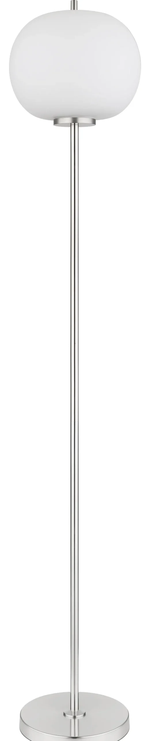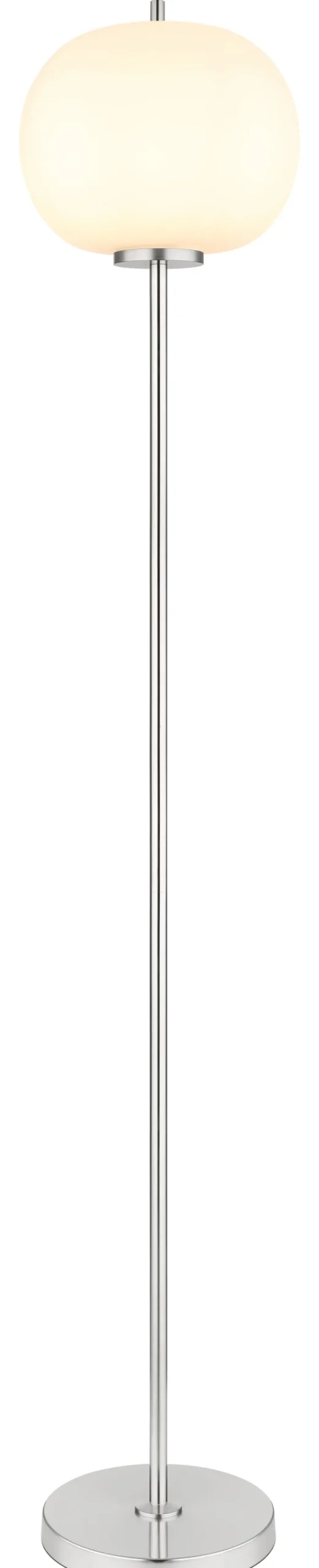 Die 1-flammige GLOBO Retrofit Stehlampe BLACKY hat eine Höhe von 160 cm. Ihr Durchmesser beträgt 30 cm, ihr Gewicht 8 kg. Sie ist aus nickelfarbigem Metall und Glas in Opalweiß, mit Ein- und Ausschalter.