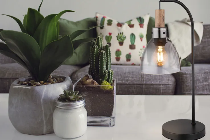 Die schwarzfarbige Retrofit Tischlampe MATTEA von GLOBO hat eine Höhe von 55 cm und passt durch ihr stilvolles Design in moderne und klassische Einrichtungen. Durch die puristische Form und das elegante Holzdekor ist die 1-flammige Leuchte ein Blickfang auf dem Schreibtisch oder einem Beistelltisch. Auch für die Nachtkonsole ist sie die perfekte Beleuchtungslösung. Die Tischlampe sorgt für eine stimmungsvolle Beleuchtung und verleiht jedem Raum einen besonderen Charme.