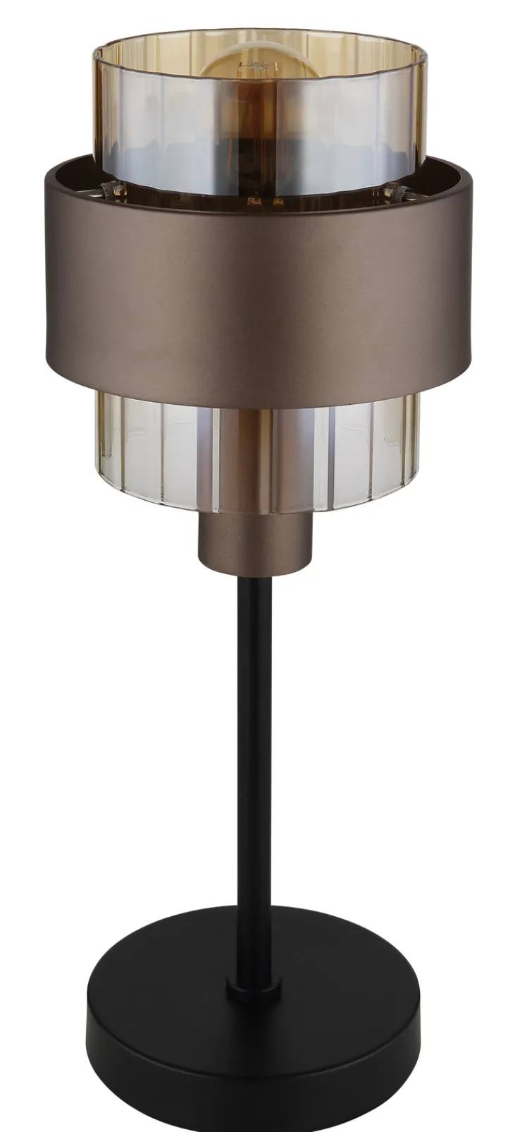 Die Tischlampe MILLEY von GLOBO vereint modernes Design mit funktionaler Beleuchtung. Mit einem Durchmesser von 18,5 cm und einer Höhe von 47 cm ist sie kompakt und dennoch ein Blickfang. Die Lampe besteht aus einer Kombination von Metall und Glas, was ihr eine elegante und zeitgemäße Ausstrahlung verleiht. Der bronzefarbene Schirm harmoniert perfekt mit den schwarzen und goldfarbenen Akzenten, die im Farbton Amber schimmern. Diese Farbkombination sorgt für ein warmes und einladendes Lichtambiente.