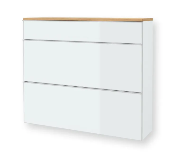 Die pulverbeschichtete Griffleiste aus Aluminium ist ein zusätzlicher Eye-Catcher, der die Hängekommode Vortina so besonders macht. Die praktische Wandkommode ist 120 cm x 102 cm groß und weist eine Ausladung von 31 cm aus. Mit 67 kg ist die Hängekommode Vortina fast ein Leichtgewicht. Ob mit Schuhen oder Accessoires bestückt – dieses Möbelstück ist ein echtes Must-have.