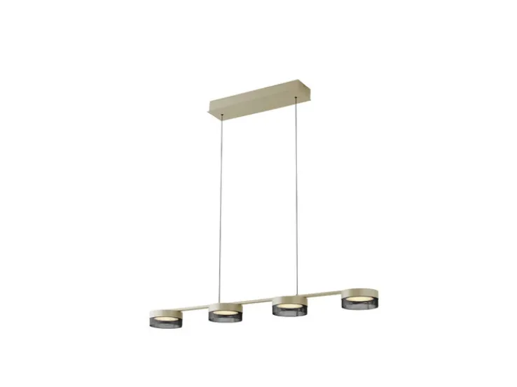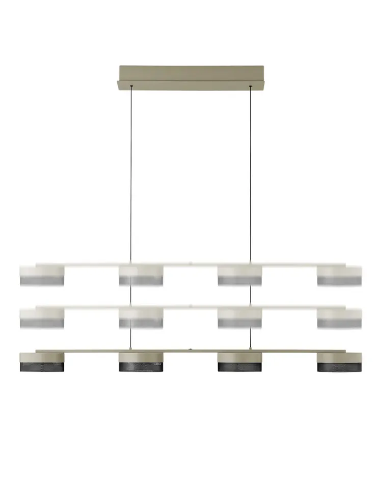 4 Lichtquellen auf einer Breite von 110 Zentimetern und einer (verstellbaren) Höhe von 150 Zentimetern, sorgt das LED Balkenpendel MESH von HELL über Arbeits- und Esstischen für punktgenaue Helligkeit. Das ist Industrial Design par excellence! Balken und Basis der vier Lampen sind aus beigem Eisen (Farbton Sand) gestaltet, der Schirm besteht aus schwarzem Lochblech (Mesh).