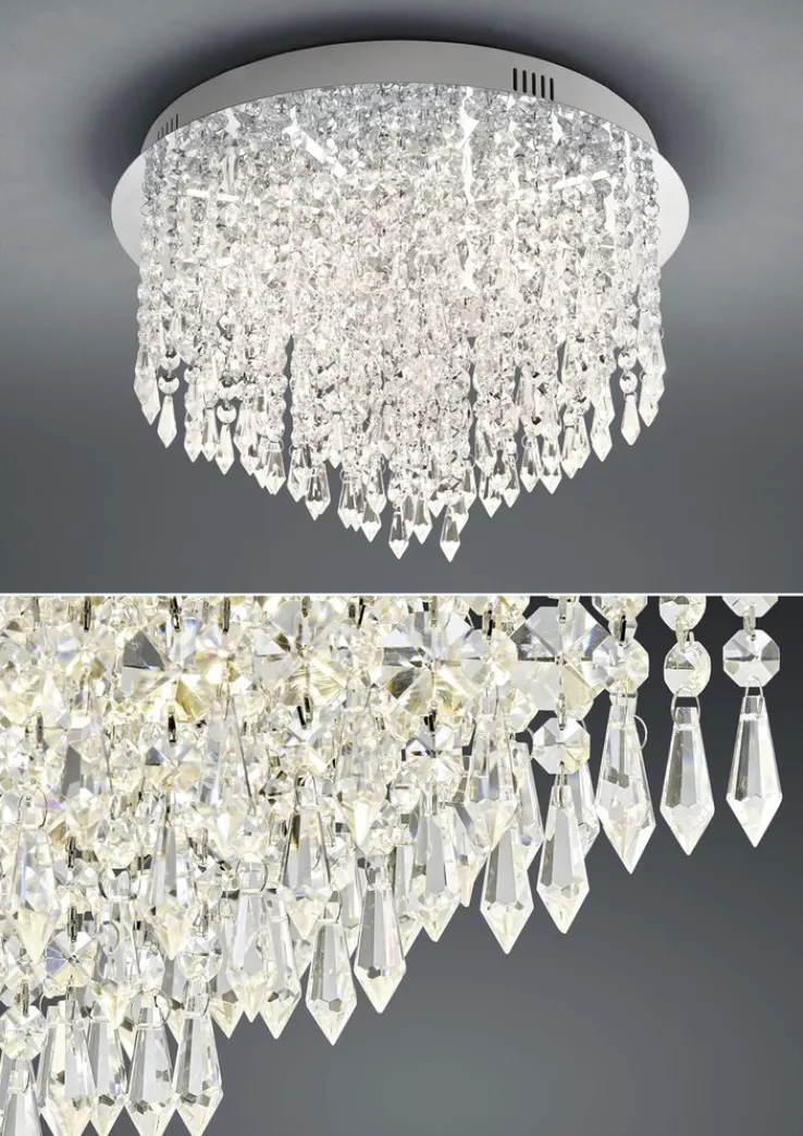 Die LED Deckenlampe PALACE von der Marke HELL ist chromfarbig und ein mondänes Schmuckstück. Mit ihrer runden, kompakten Form passt sie hervorragend zu niedrigen Deckenhöhen und ist auch in kleinen Räumen ein stylischer Eyecatcher. Sie ist zeitlos gestaltet und kann daher in Verbindung mit jeglichen Einrichtungsstilen zum Einsatz kommen. Der Kristallbehang verleiht ihr einen exklusiven Charakter.