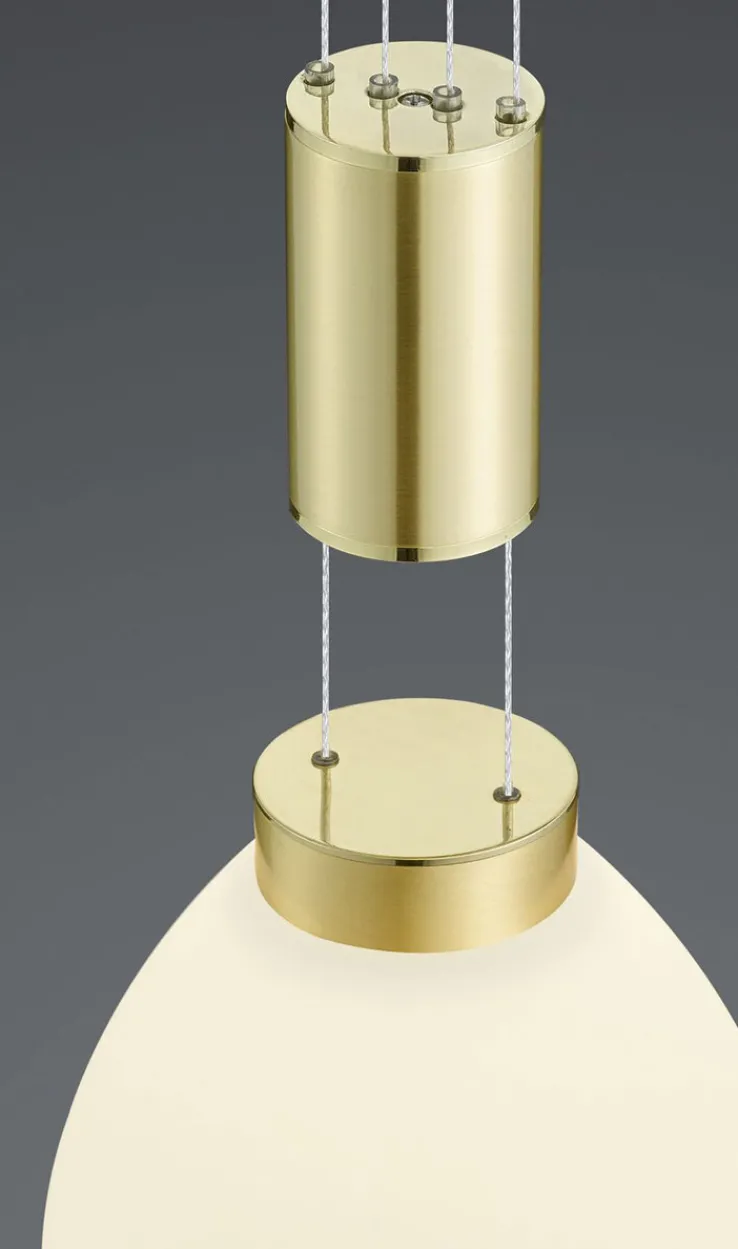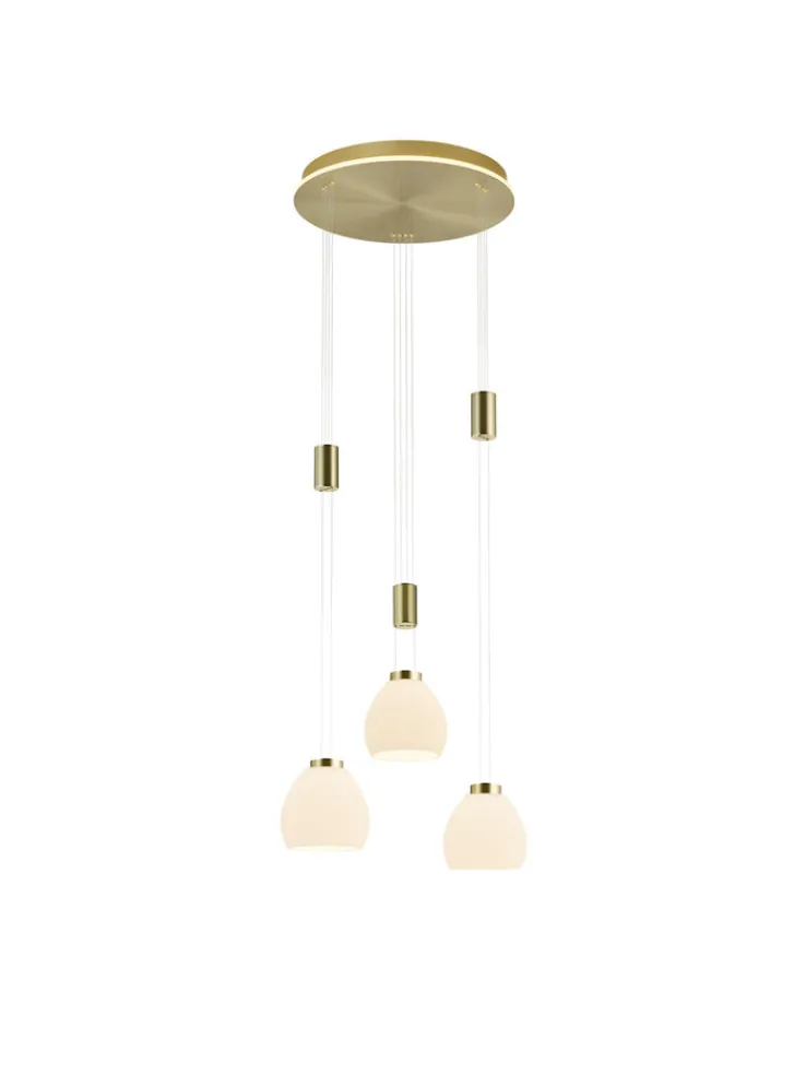 Die attraktive LED Pendellampe SAM mit einem Durchmesser von etwa 43 cm setzt in modern oder klassisch eingerichteten Wohnbereichen Akzente. Das messingfarbige Metall mit glänzenden Oberflächen in Verbindung mit satiniertem Opalglas machen das 3-flammige Rondell zu einem Blickfang über einem Couchtisch oder einem runden Esstisch. Mit den Gewichten und Seilzügen ist die Beleuchtung individuell auf alle Ansprüche einstellbar.