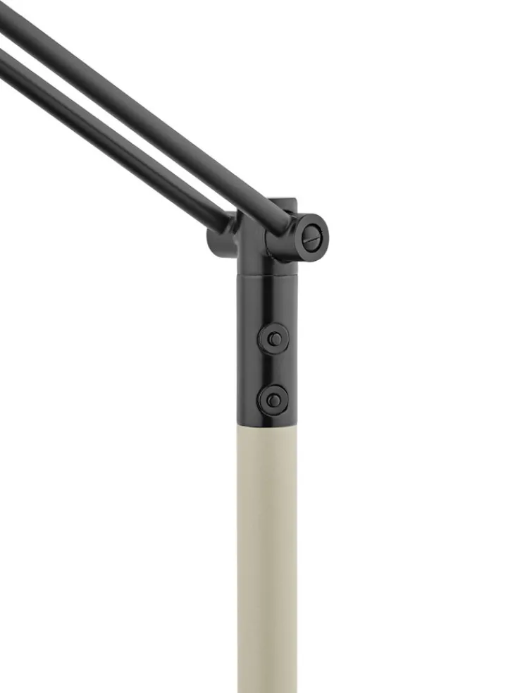 Zwei Gelenke sorgen dafür, dass das Licht der 110 Zentimeter hohen LED Stehlampe EVOLO in Taupe von HELL wirklich zielgerichtet da ankommt, wo es benötigt wird. Die Stehlampe mit ihren 50 Zentimetern Tiefe ist mit Lichtfarbverstellung CCT und einem Tastdimmer ausgestattet.