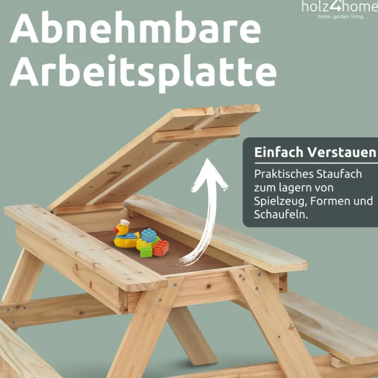 Der naturfarbige Kinder Gartentisch PICKNICK von holz4home hat eine Breite von 100 cm und präsentiert sich in einem kinderfreundlichen Design. Durch die kompakte Bauweise ist der Tisch mit 2 Bänke ideal für den Garten oder die Terrasse. Die vielseitige Garnitur bietet viel Platz für Bastelsachen, Spielzeug, Snacks und Getränke. Beim Kindergeburtstag ist der Gartentisch schnell der Lieblingsplatz. Der Gartentisch für vier Personen ist auch für ein Picknick die ideale Sitzgelegenheit.