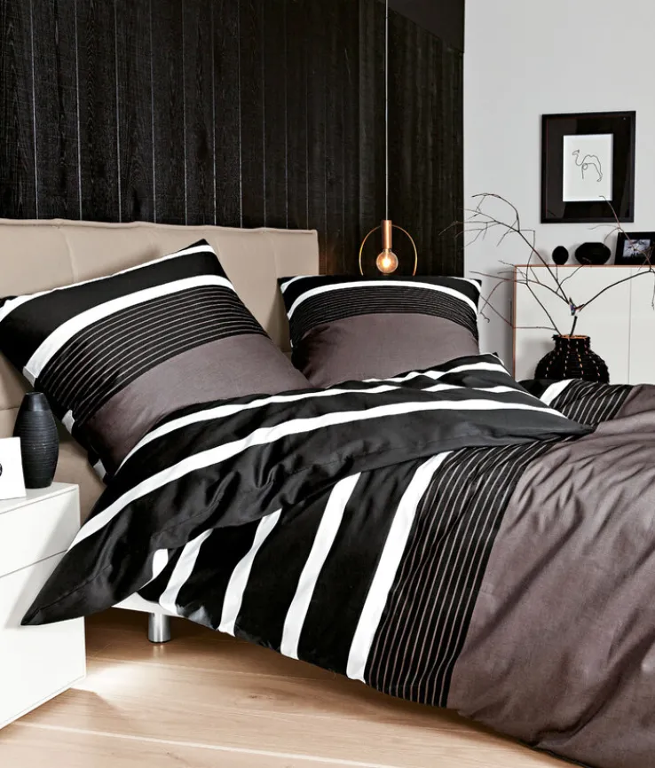 Die modisch gestaltete J. D. Janine Mako-Satin-Bettwäsche 135 x 200 cm braun/schwarz sorgt für traumhafte Nächte.