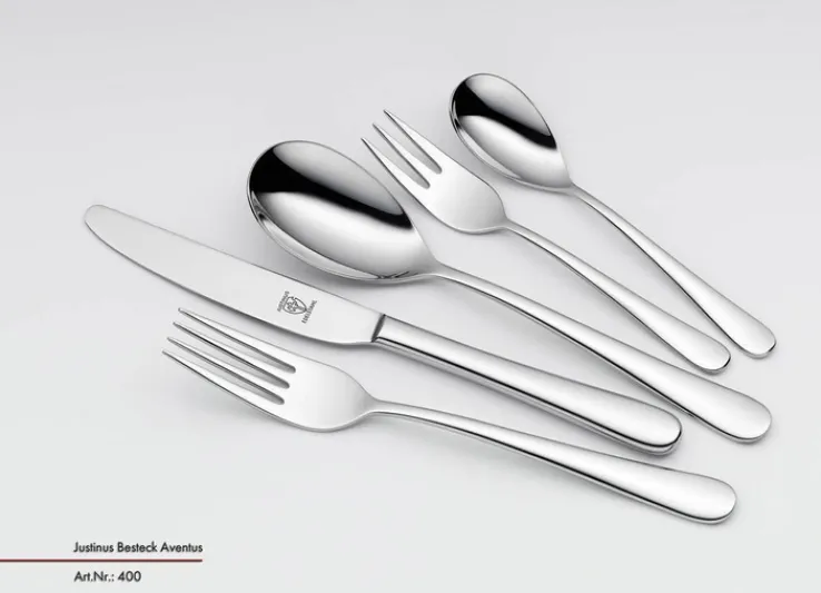 Das Set AVENTUS ist ein Besteck-Set, das keine Wünsche offen lässt. Gabeln, Löffel, Messer, Kaffeelöffel und Kuchengabeln sind jeweils in sechsfacher Ausführung erhältlich. Die Firma JUSTINUS stellt hohe Ansprüche an Material und Verarbeitung, so dass das Set lange genutzt werden kann. Das 30-teilige Geschirr kann im Alltag verwendet werden, eignet sich aber besonders für große Anlässe, wenn eine Feier im kleinen Rahmen stattfindet. Das Geschirr ist spülmaschinengeeignet, so dass der anschließende Abwasch schnell erledigt ist.