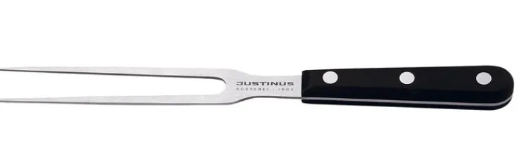 Mit der spülmaschinenfesten Fleischgabel RONDA aus rostfreiem Spezial Klingenstahl können Sie ein gebratenes Stück Fleisch oder Geflügel fixieren. Dadurch wird das Tranchieren des Bratguts erleichtert. Auch zum Anheben und Wenden von Fleisch und Geflügel während des Garvorgangs eignet sich die Fleischgabel von JUSTINUS.