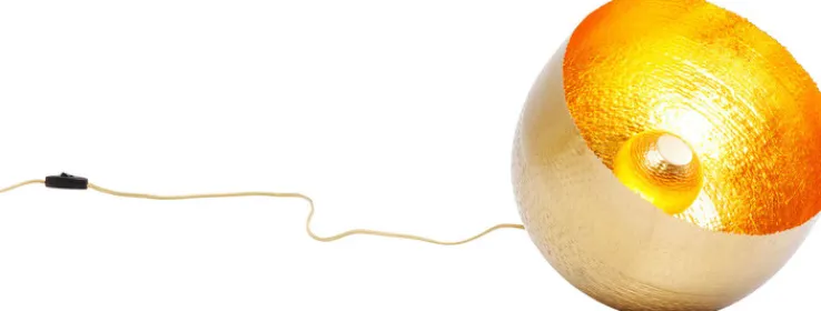 „Die KARE DESIGN Retrofit Tischlampe APOLLON ist goldfarbig. Ihre Höhe beträgt 25 cm. Auffallend ist die schicke goldene Innenbeschichtung.